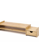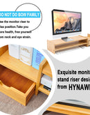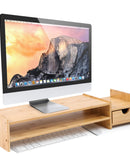 HYNAWIN Monitor Stand Riser Desk Organizer-Bamboo 2 Tier Laptop Stand With Drawers