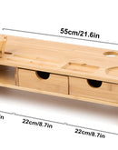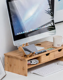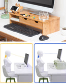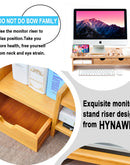 HYNAWIN Monitor Stand Riser Desk Organizer-Bamboo 2 Tier Laptop Stand With Drawers