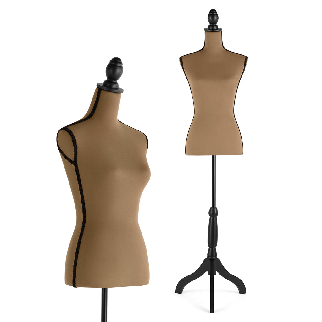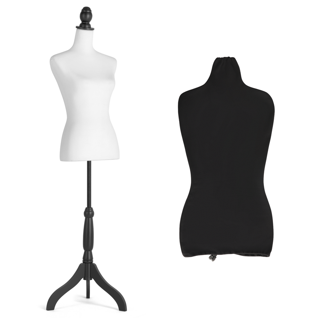 【High-quality Materials】: Our female dress form mannequin is made of upgraded burlap fabric, high-density foam, tough stainless steel tube and painted pine wooden tripod stand.