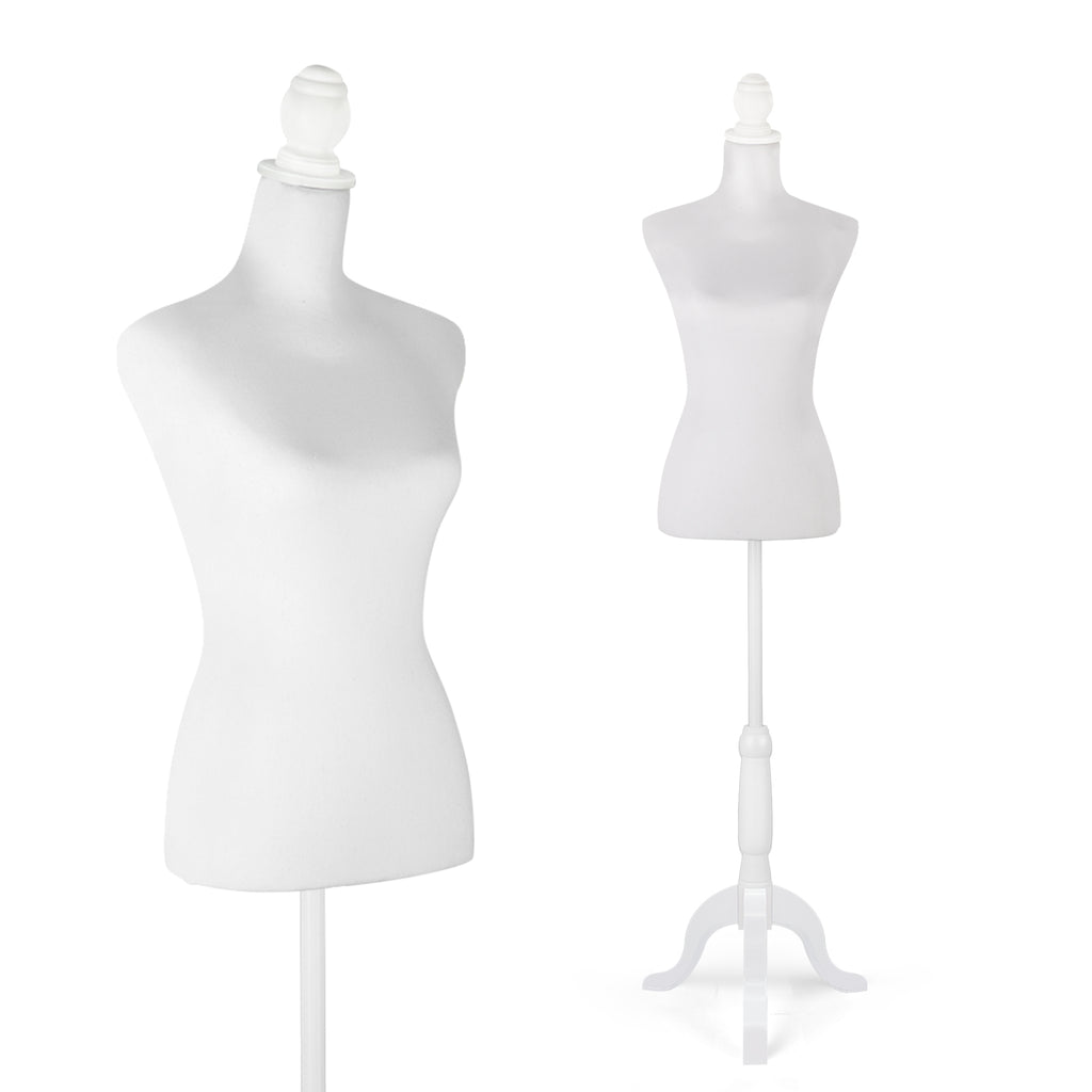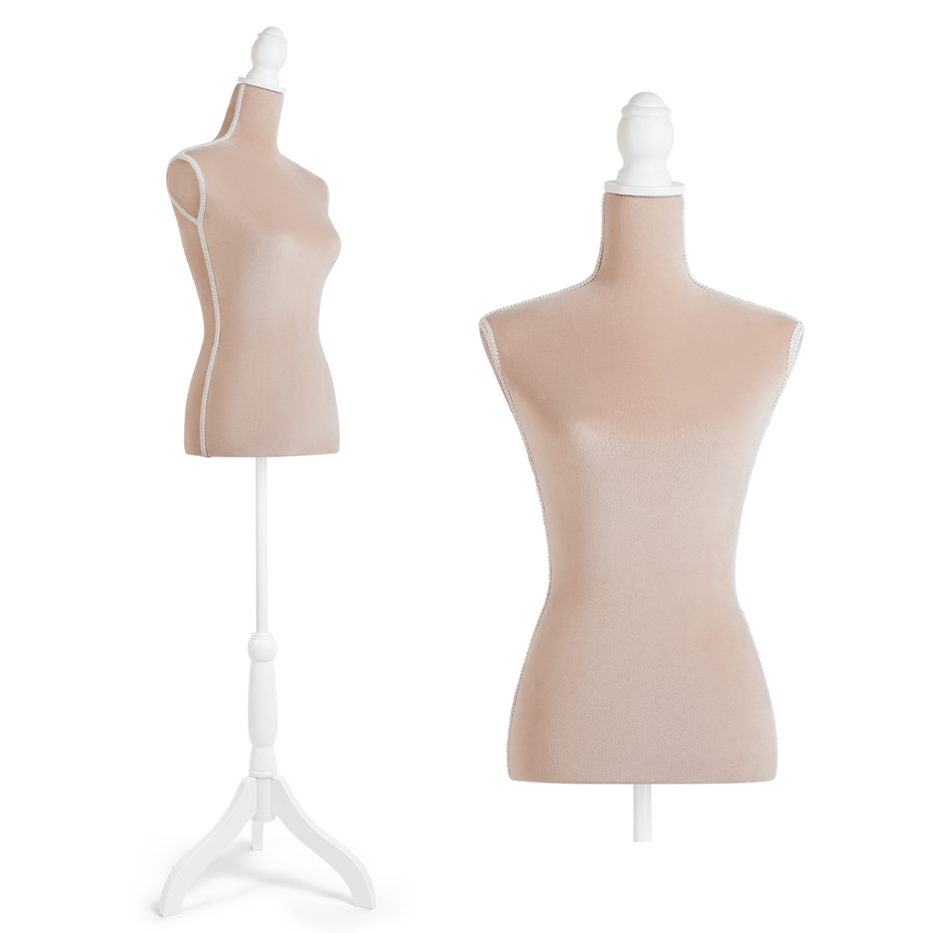 【High-quality Materials】: Our female dress mannequin is made of upgraded velvet fabric, high-density foam, tough stainless steel tube and painted pine wooden tripod stand