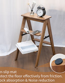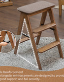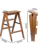Multi-Functional Foldable Ladder, Portable Bamboo Step Ladder With Wide Anti-Slip Pedals For Home, Kitchen, Office, Space-Saving