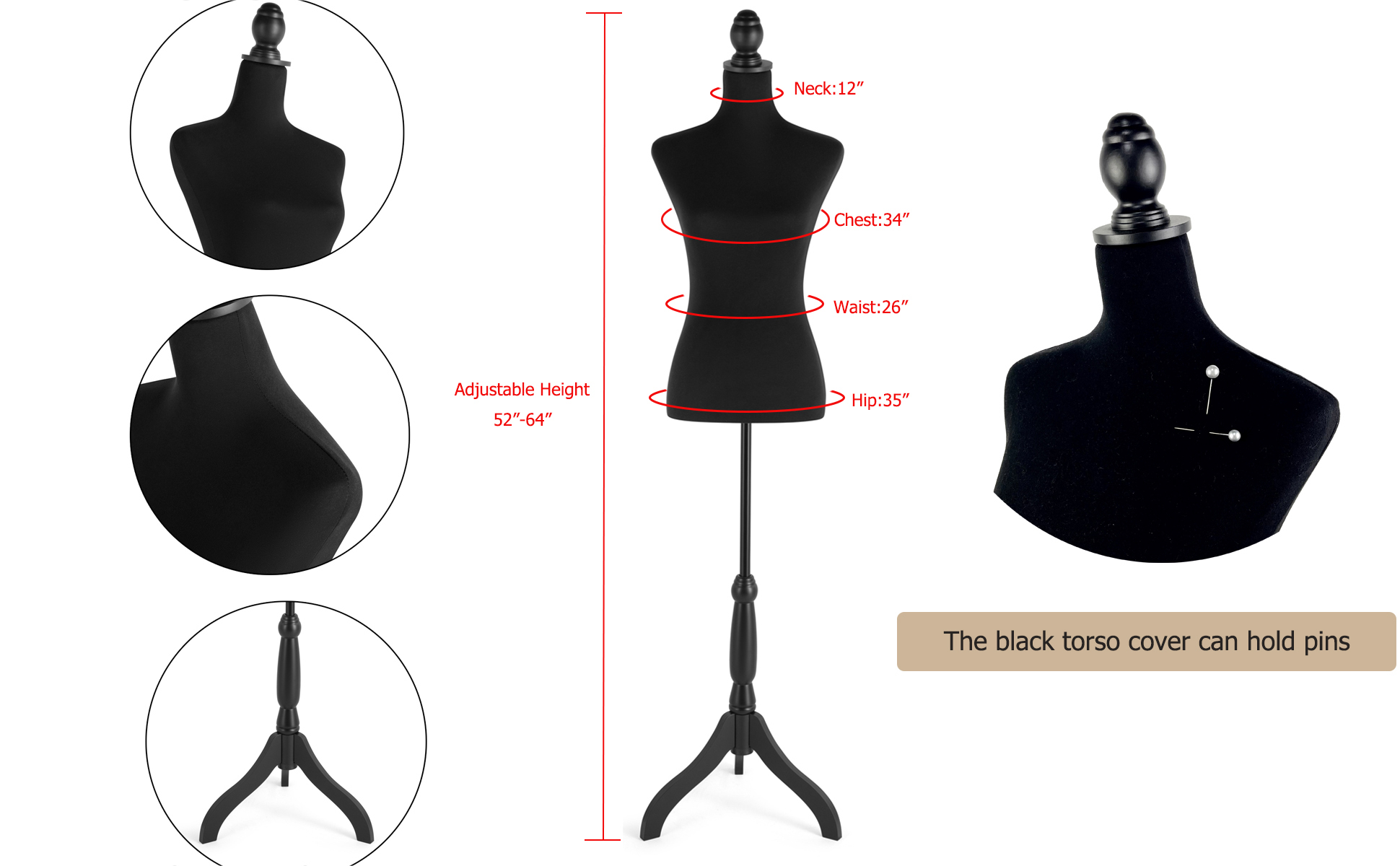 {Adjustable Height}: The height of the mannequin torso stand can be adjusted from 52 to 64 inch, satisfying various demands. Tips: The clip is on the main body. (You can use the clip to adjust the height.).jpg?w=1940&h=1200)