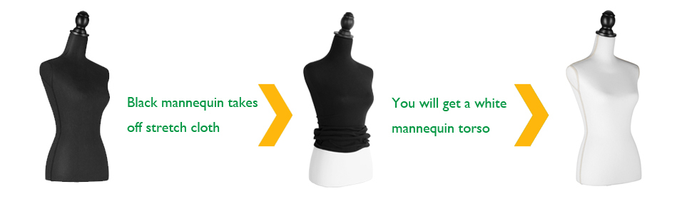 {Upgraded 2 in 1 Mannequin}: The base fabric of the mannequin is white. White female mannequin body w/ detachable black torso cover and the black cover is removable if not needed. The outer layers can hold pins.