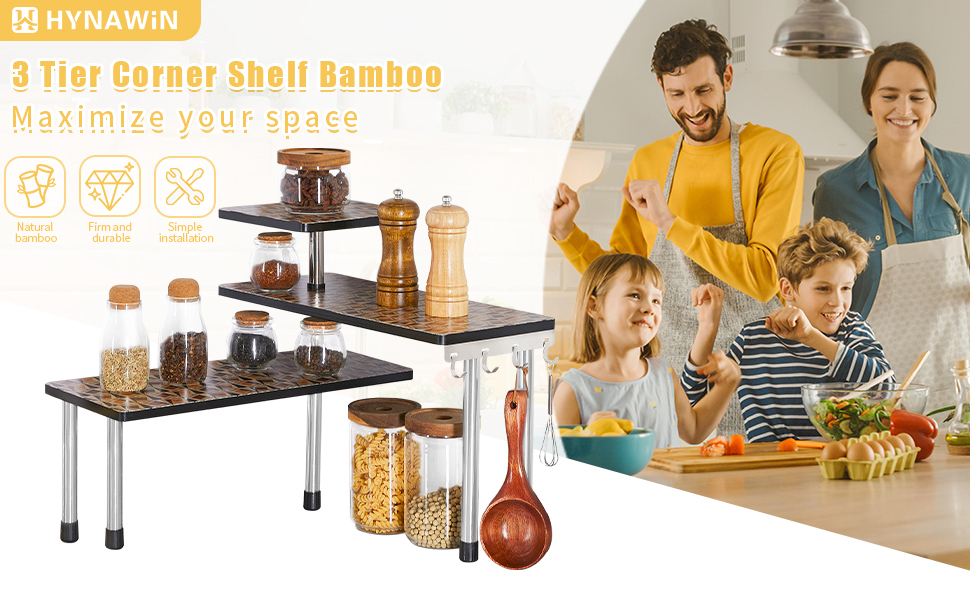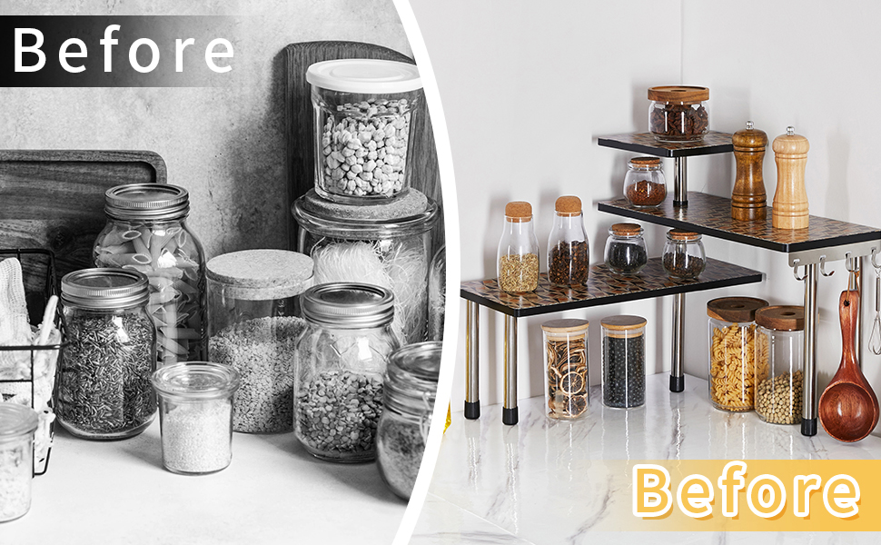 {SUITABLE FOR ALL KINDS OF DECORATION}:Free-standing shelves can be moved and placed in almost any location, including kitchen countertops, cabinets, pantry, and even other rooms in the house. It can be easily used for bathroom, cosmetics and seasoning tank storage, or for storing crafts and decorations.The versatile bamboo rack is an excellent solution for kitchen or home storage and organization.