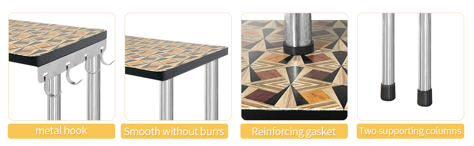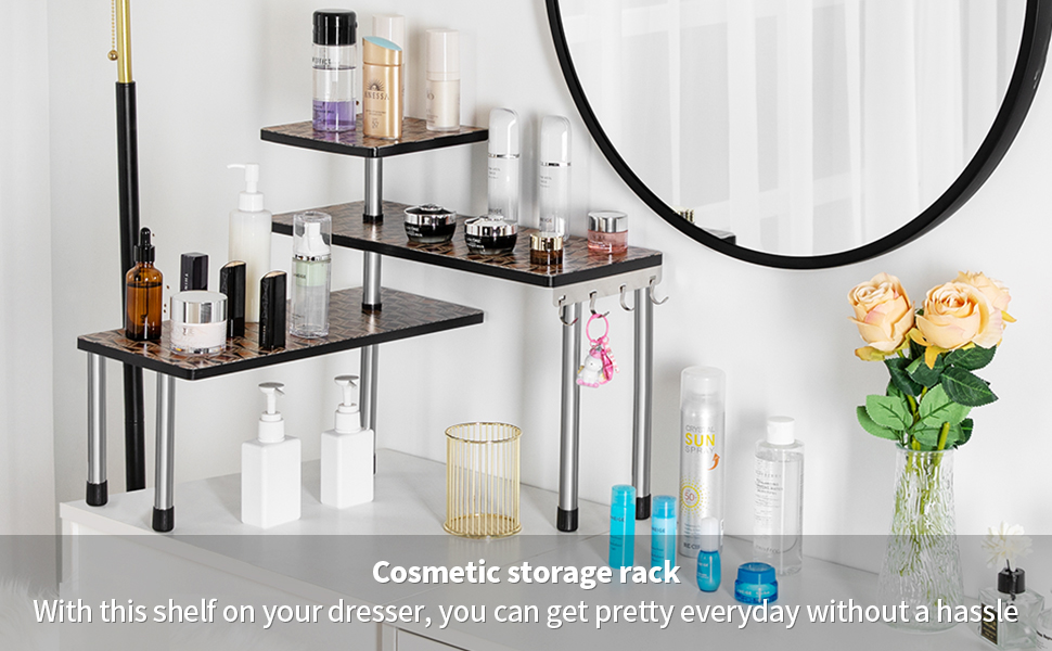 {STRONGER CONFIGURATION}:Upgraded version of shelf, the design of the two legs makes the overall structure more stable and more practical. It is not only suitable for corners, but can also be placed directly on the table smoothly.