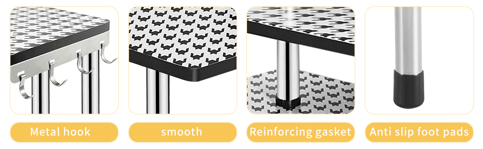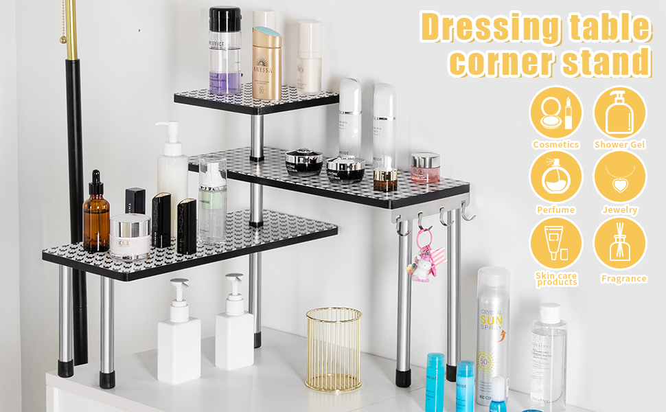 {STRONGER CONFIGURATION}:Upgraded version of shelf, the design of the two legs makes the overall structure more stable and more practical. It is not only suitable for corners, but can also be placed directly on the table smoothly.