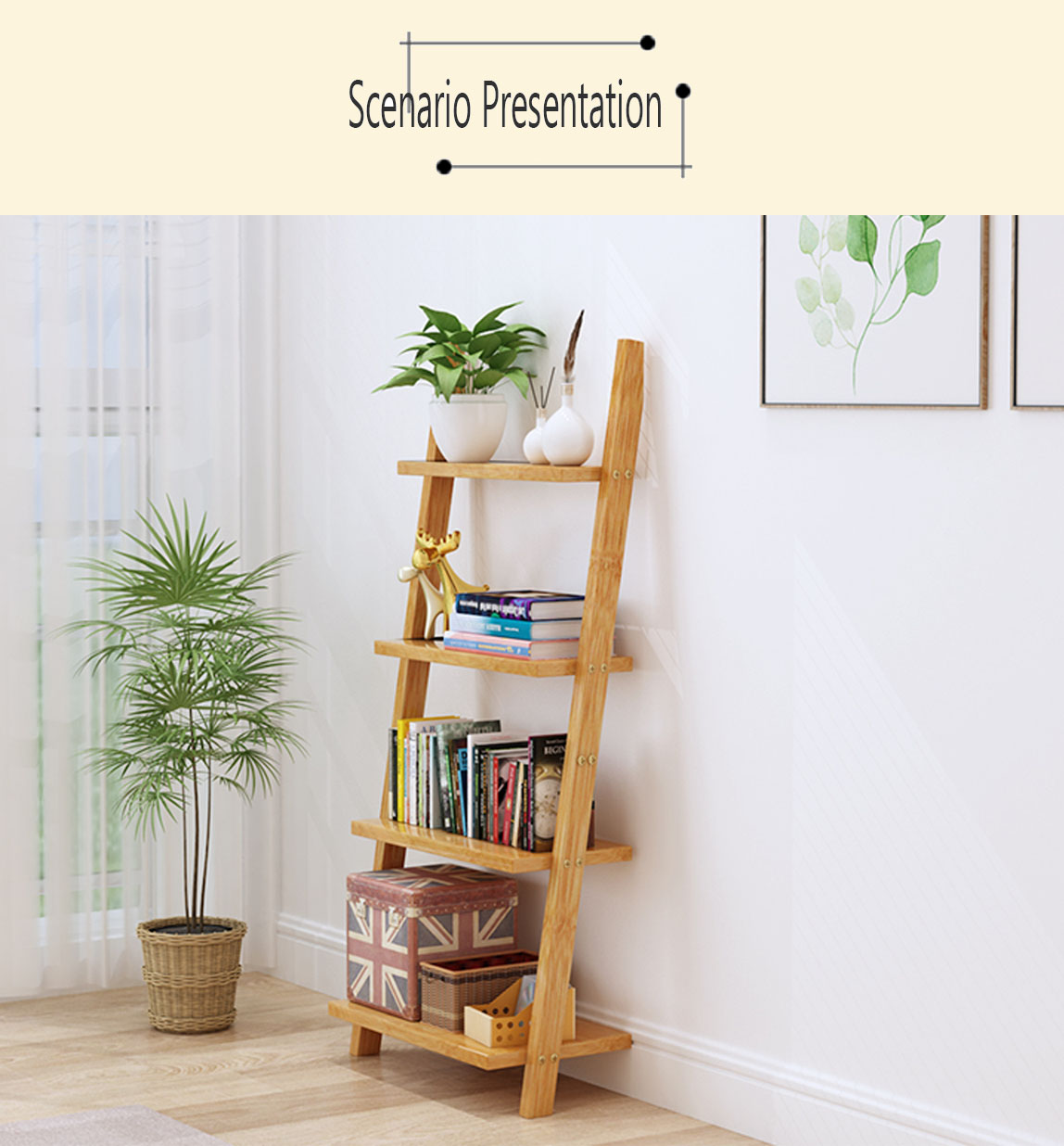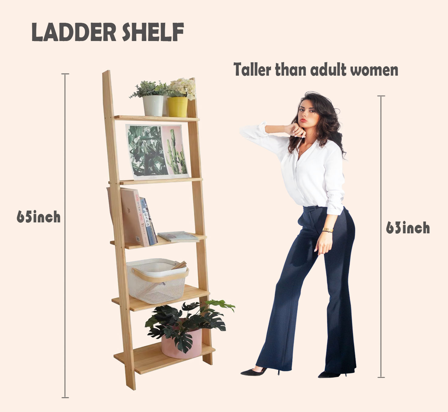 {Sturdy & Stable Construction}This shelf designed with attractive modern ladder frame,which will add a modern fashionable feeling to your home. The ingenious design not only raises the beauty of the ladder, but also increases its firmness.