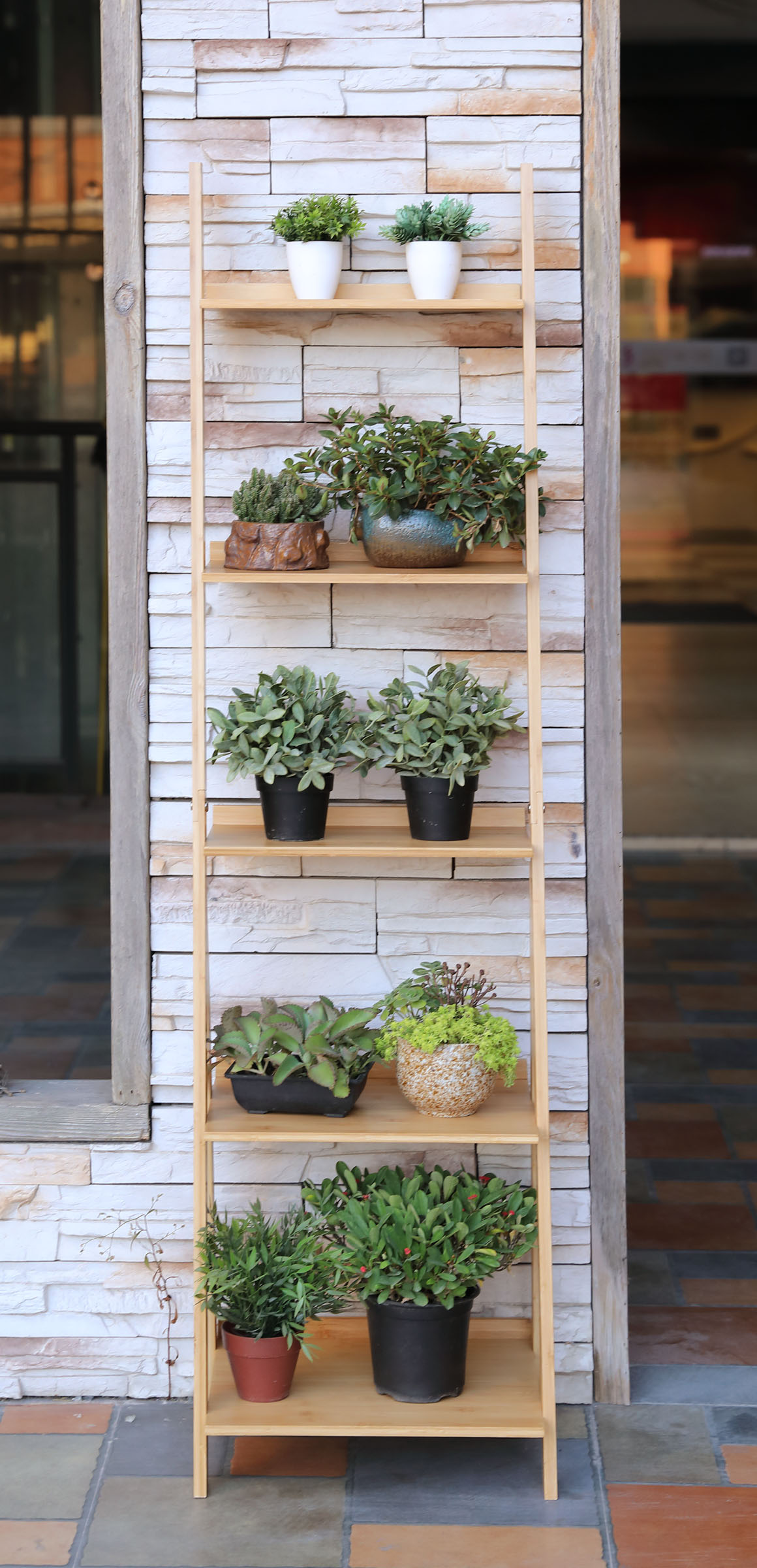 {MULTI-PURPOSES} The ladder shelf can be used in the living room, bedroom, kitchen, balcony, office, as a flower shelf, book shelf, bathroom cabinet, and storage cabinet.