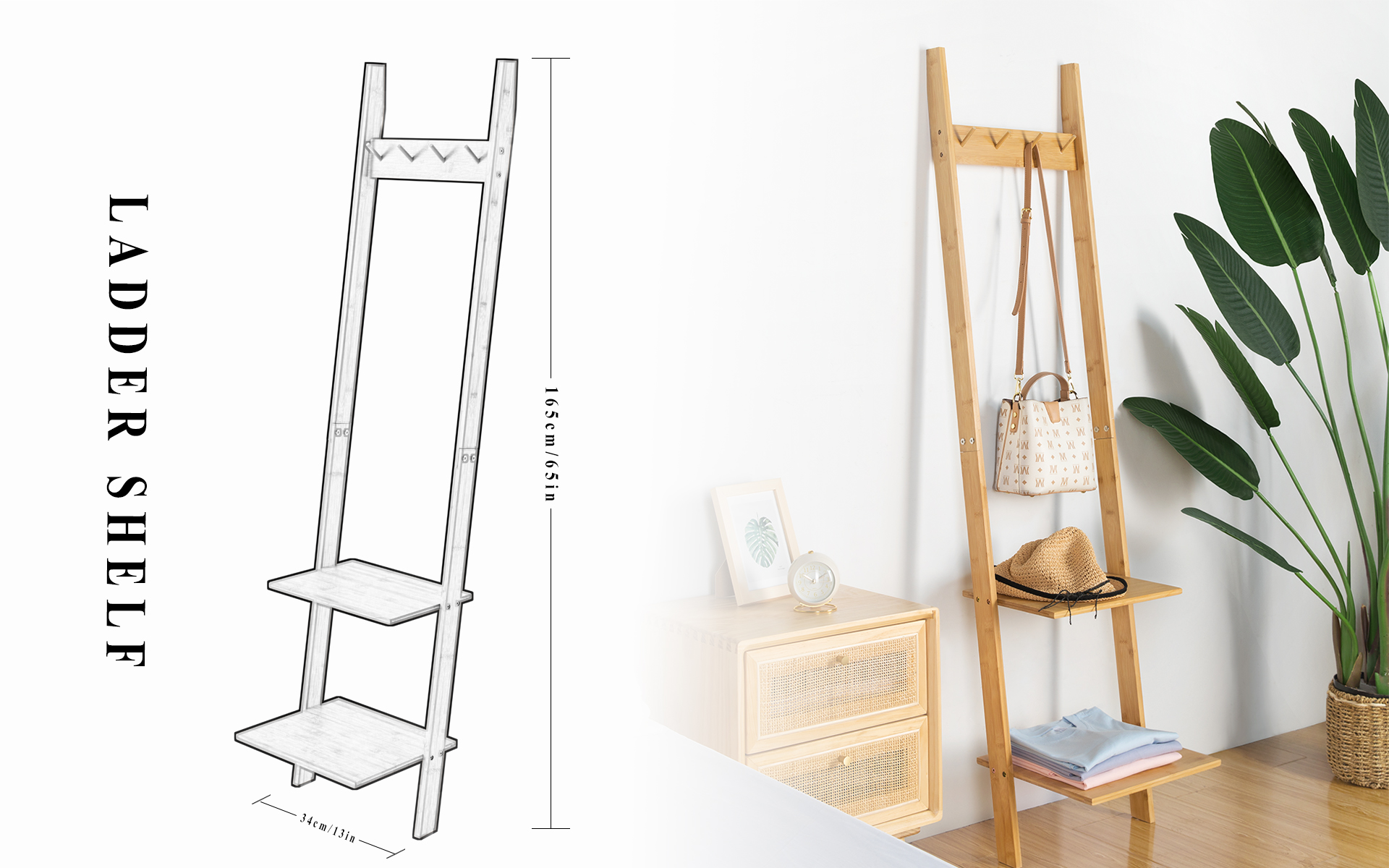 {Strong Decorative Effect}Do you want your own space to integrate wood elements, neutral colors, clothes hangers and storage racks? Take a moment to explore the narrow ladder of HYNAWIN.