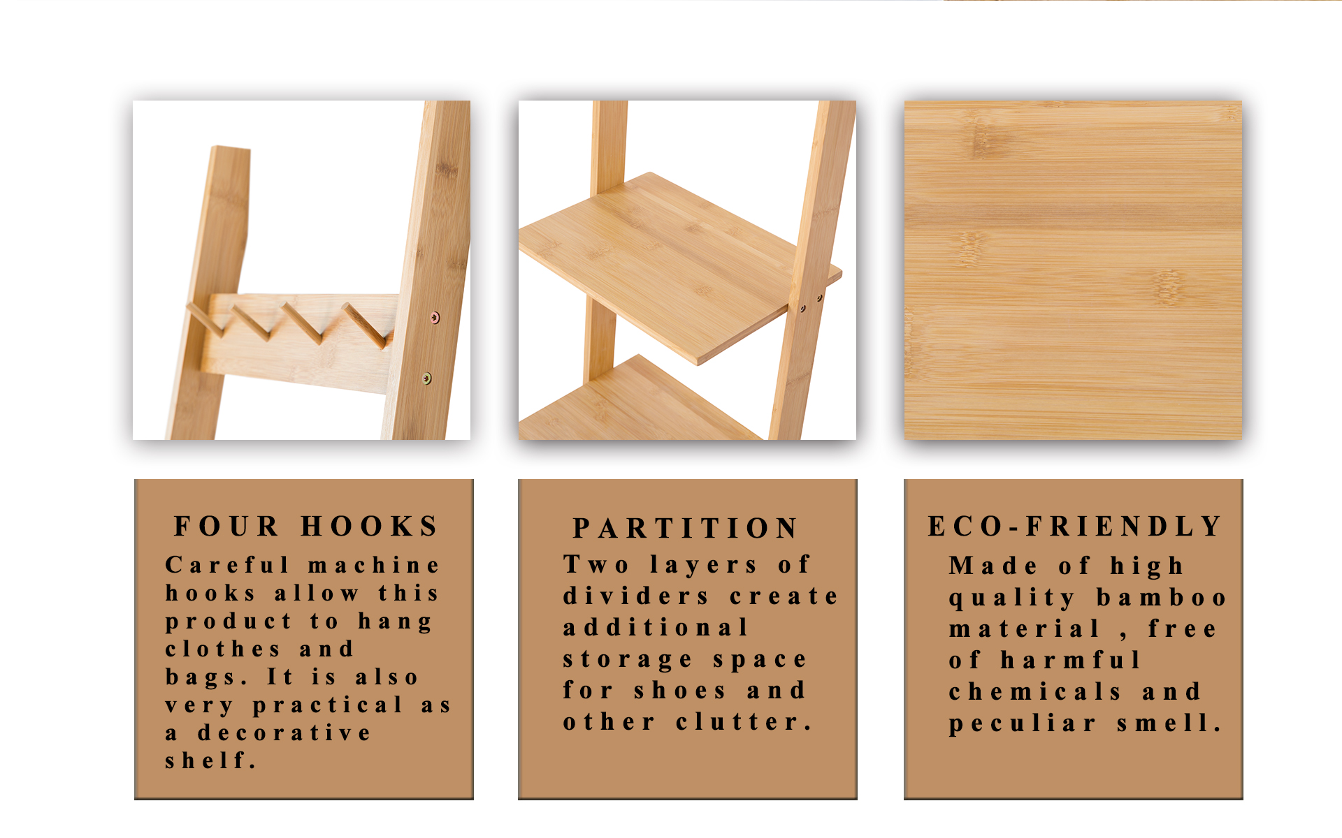 {Durable & Sturdy}Made of pure bamboo, the material is very hard. Four exquisite hooks are very easy to install and remove.