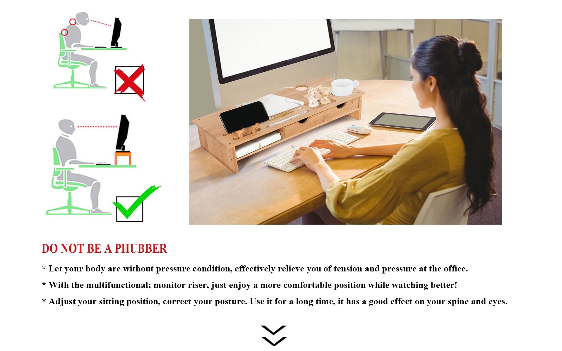 {Ergonomic Height}:Elevate your monitor or laptop to a more comfortable position.It will lift your monitor to the same height as your eyes.It can effectively relieve the fatigue of your shoulders, neck and eyes,which could better viewing experience.