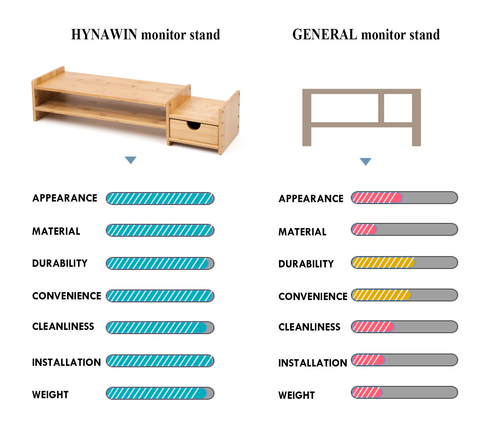{Exquisite Appearance}:The originality and beauty of our monitor stand riser are very rare. nice appearance can be your best gift to your friends.Good structure makes it very stable,meticulous process and flat surface will satisfy your strict quality demand.