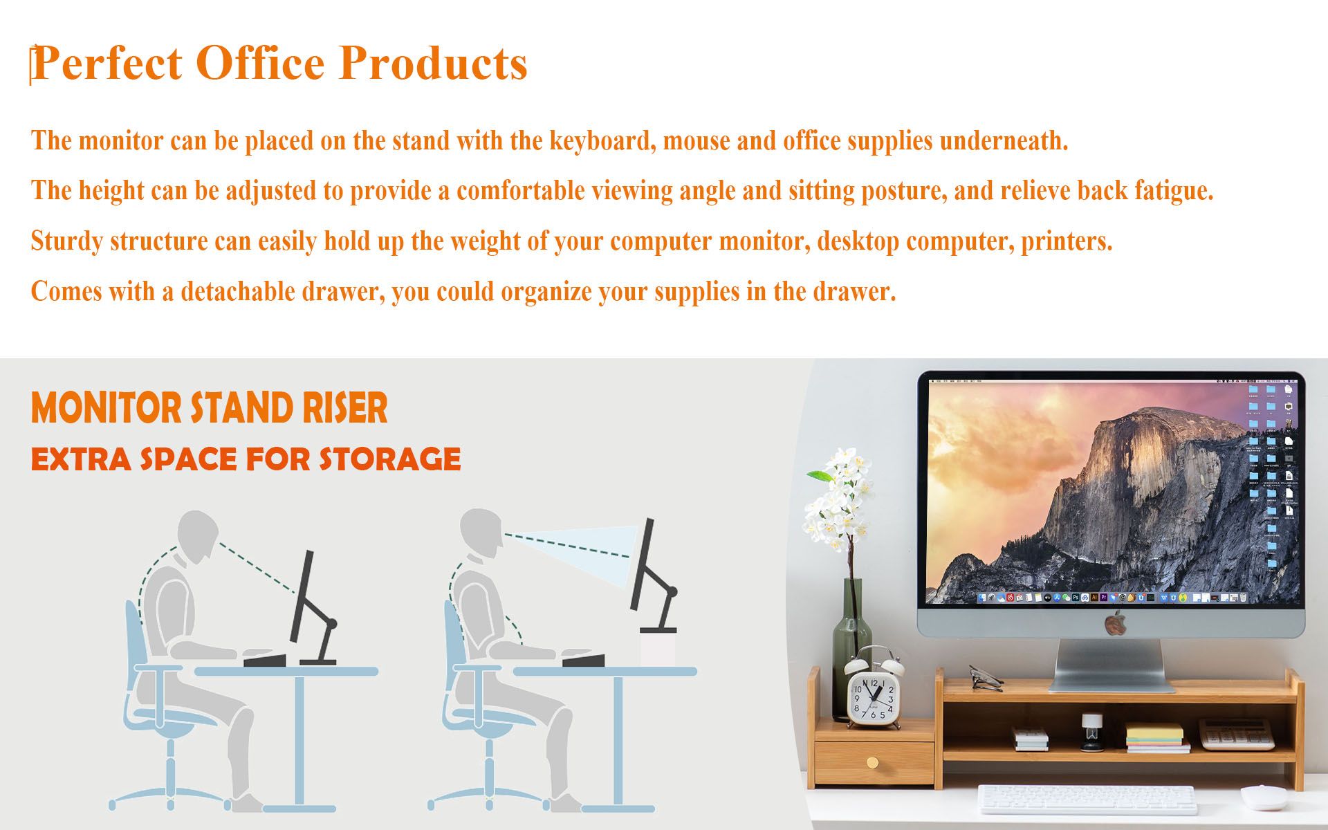 {Ergonomic Height}:Elevate your monitor or laptop to a more comfortable position.It will lift your monitor to the same height as your eyes.It can effectively relieve the fatigue of your shoulders, neck and eyes,which could better viewing experience.